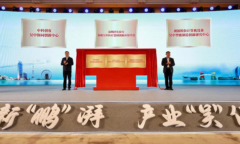 “深圳湾实验室苏州吴中医疗器械创新应用平台”“中科创客吴中协同创新中心”“视源股份计算机设备吴中智能制造创新研究中心”“一平台两中心”集中揭牌。